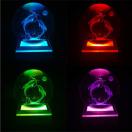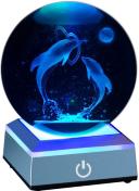 3Dアート:3Dレーザー彫りで、一輪の月が夜空にかかって、数限りない星がきらきら輝いている。星と月明かりの下、波しぶきが上がって海豚が海から、勢いよく上向きにどび出す姿をはっきり見えます。