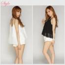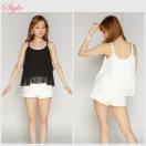 シフォンフレア&キャミソールトップス全5色【白 黒 ネイビー ピンク ベージュ】★yh-008
