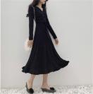 • フラワードットレースプリーツフレアチュールドレスワンピース黒