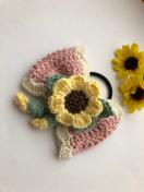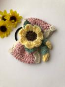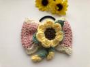 ラメ入りコットン糸で大きめリボンを編んで、ひまわりのせました♪