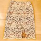 ミリオンカラッツMillionCaratsベージュフラワーレースタイトペンシルスカートカーキグリーンチェックレイヤード