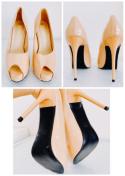 ベージュオープントゥパンプスハイヒールエナメルパテント