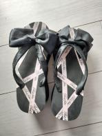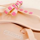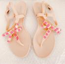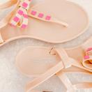 ベージュ×ネオンピンク蛍光トングサンダル海ビーチサンダルリゾートインポートリボンりぼんスタッズ