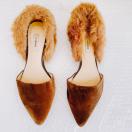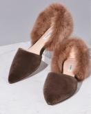 LEVERNISラヴェルニポインテッドトゥ茶色ブラウンモカエコファーぺたんこローヒールパンプスフラットシューズ