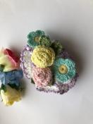 レース糸で編んだパステル巻き巻き薔薇とパステルお花♪