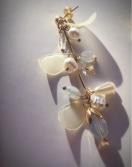 花びらのようなモチーフときらきらと輝くビジューが耳元で揺れる、可憐なデザインのイヤリング