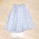 アイスグレーチュールシースルーフレアスカートミディアム膝丈灰色シアー