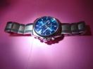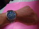見ての通りのカッコ良さです。文字盤のブルーが爽やかで綺麗です。現在は動いていますが発送までに電池が切れるかも知れません。
