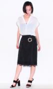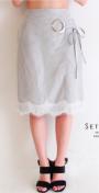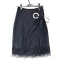Settimissimoセッティミッシモ黒ブラック張りハリツヤサテンフラワーレースリボン巻きスカートラップスカート