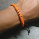 樹脂製のビーズを紐で編んでブレスレットに仕上げました。