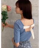 スリーブは五分丈で、二の腕をカバーし、レディな印象を高めます