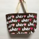 Cher(シェル) トートバック エコバッグ 【ブラウンにホワイトでCherのロゴ、2タイプのピンクでハートを描いていてとってもキュートで可愛いです】Sサイズ