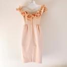 リリーブラウンLilyBrownベージュピンクオフショルダーフリルドレスワンピース