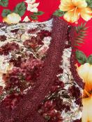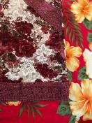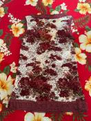 気品のあるワインレッドのレース縁取り、透け感抜群のバラ柄レース生地☆