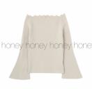 少し暖かみのあるストレッチ素材のリブニットは、襟ぐりがスカラップになってオフショル2WAY