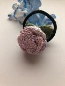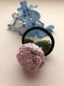 レース糸で巻き巻き薔薇を編んでヘアゴムを作りました。