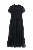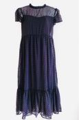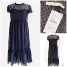 ZARAザラシースルークルーネックフリルブラックドットワンピースドレス黒パフスリーブ半袖black