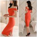 韓国赤レッドオフショルダータイトドレスワンピースストレート