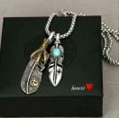クロム シルバー ダブル 2 フェザー 羽根 ターコイズ クロウ爪 サージカルステンレス ボール チェーン ネックレス 手首 には ブレスレット です。