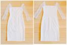 韓国タイトドレスワンピース白袖フラワーレース膝丈ホワイト