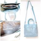 アナザーエディション水色メッシュパンチングスクエアトートバッグハンドバッグ ショルダーバッグミントサックスブルーパステルカラーAnotherEdition