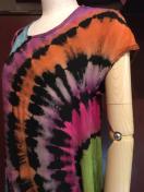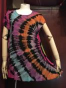 左脇を中心に放射状の絞り染めになっているアシンメトリータイダイチュニックです。