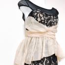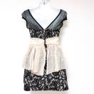 ANAPlatina黒ベージュシフォンペプラムシースルーブラックフラワーレースミニタイトドレスワンピースドッキング花柄
