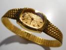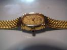 見ての通りの豪華なエルジンの腕時計で12時の部分には天然ダイヤが2個付いています。金の文字盤で金の腕時計はなんとも豪華で