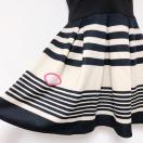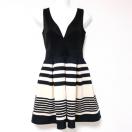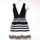 黒ベージュブラックボーダータックフレアVカットミニワンピースドレスインポート