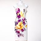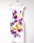 インポート白大柄フラワー花柄タイトドレスワンピースラベンダー紫ホワイト膝丈ミディアム