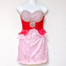 BayBClubキャバラウンジクラブ夜ミニタイトペプラムフリルビジュービーズパールキラキラドレスワンピースピンクフラワーレースベアりぼんリボンフリル