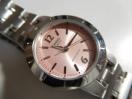 ピンクの文字盤で良い感じです。クォーツ製電池式です。