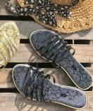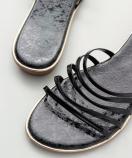 ローヒールで歩きやすい、高級感のあるデザインのサンダル