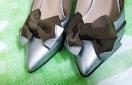 甲の大きなリボンがお嬢様っぽいパンプス♪全体に入れられたパイピングがクラシックで上品な魅力の1足です。
