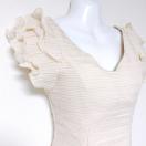 オフホワイトプリーツフリルオフショルダーボードネックミニタイトドレスワンピース白