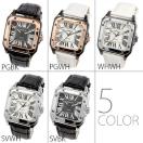 ■重厚感あるスクエアケースの、メンズモデルの腕時計です。
