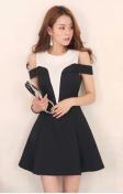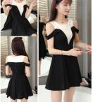 黒白モノクロバイカラーオープンショルダーフレアミニワンピースドレスブラックホワイトblack White肩開き