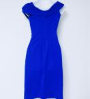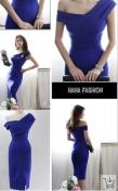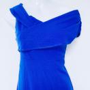 ロイヤルブルー青Blueアシンメトリーオフショルダーカシュクールタイトドレスワンピースワンショルダー