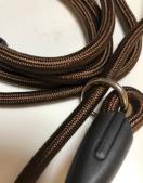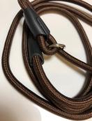 首輪とリードを一体になっていて犬が引っ張ると絞まる仕組み、且つフックをひっかける場所さえ変えればリードのサイズが調整可能です。