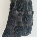 silkblackflowerシルクブラックフラワー絹黒花艶光沢ワンピースドレススクエアネック3D