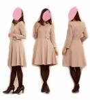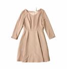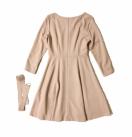 色は暗い薄ベージュピンクで少しすすけた風合いです〓。程よいフレアーと浅Vネックが落ち着いたデザインで、ウエスト別ベルトを巻くときちんと感UP〓。