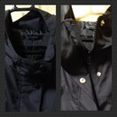 フロント両サイドにポケットあり、ZIPとボタンの2wayオープン、裾内側にドローコード付、袖一部にシフォン素材。