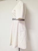 MercuryDuo白ホワイトWhitesilver艶消しスパンコールマットシルバーラメパフスリーブフレアドレスワンピース半袖