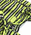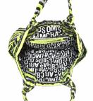 表地は、イエローパイソン柄のボーダーで、裏地は白黒の英字柄で、全体的にハデハデです〓。
