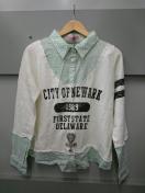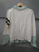 グリーンにドット柄の長袖シャツに薄手のトレーナー(プルオーバー)を重ねたようなデザインです!