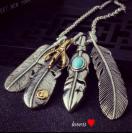 クロム シルバー ダブル 4 フェザー 羽根 小 大 ターコイズ クロウ爪 あずき チェーン ネックレス 手首 には ブレスレット です。