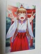 〓著/内山敦司、世界か彼女か選べないのキャラクター『あんず』の可愛い巫女衣装のイラストカード(ハガキサイズ)になります。締切日時