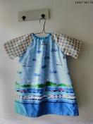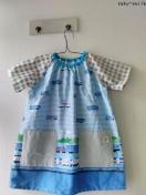 ハンドメイド作品 スモック 120~130サイズ ブルー系 電車柄