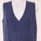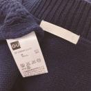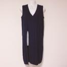 GUVネックノースリーブネイビーケーブルニットレイヤードスリットミディアムワンピース紺色
