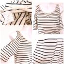 CocoDealココディールオフホワイトネイビブラックー白紺色黒ボーダーオープンショルダールームウェアミニワンピースキナリ生成り
